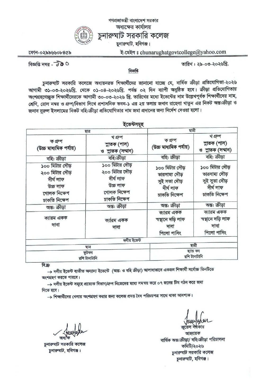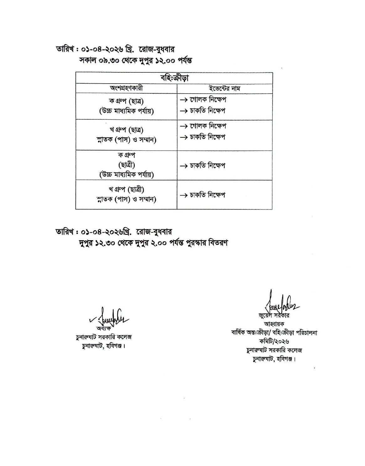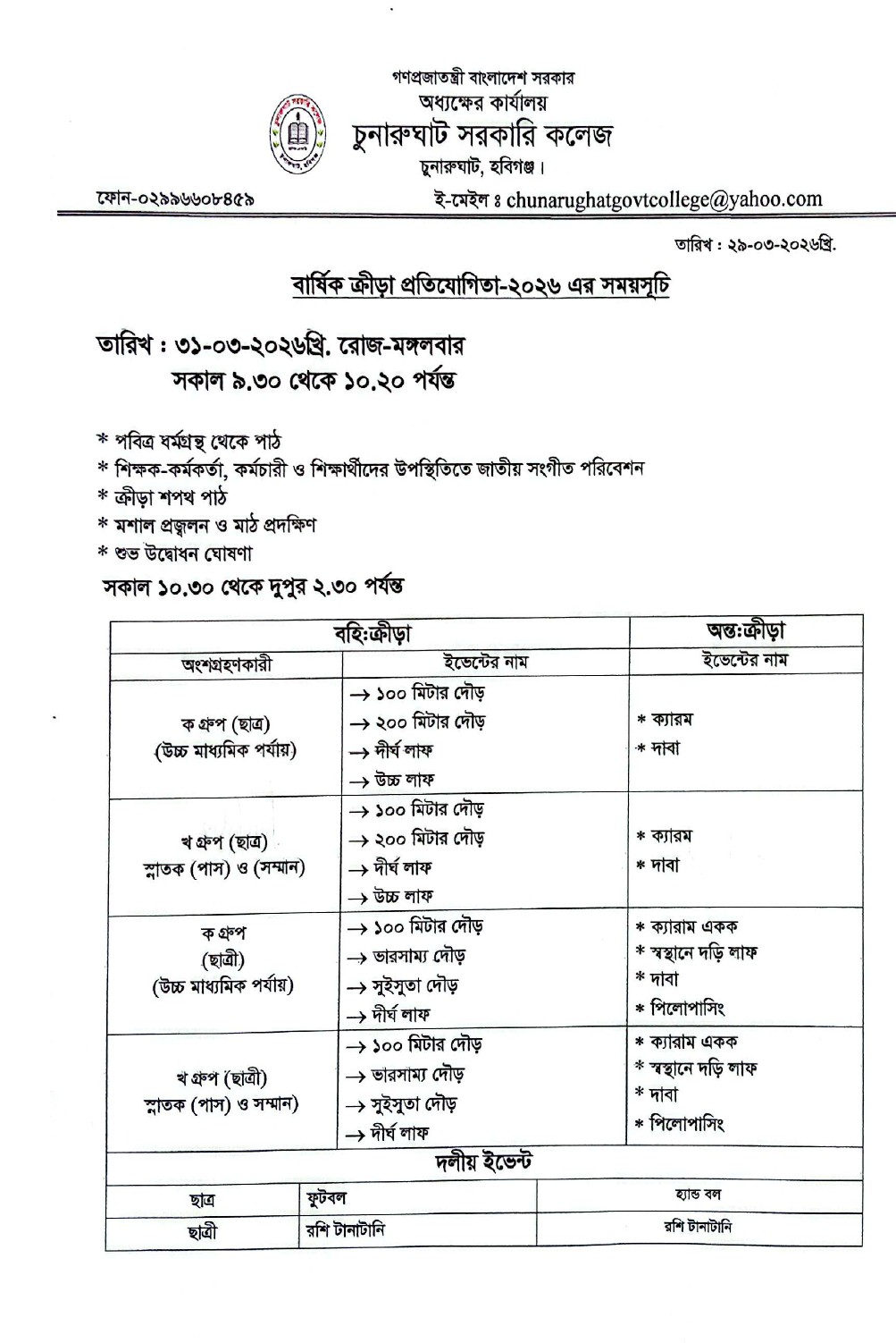 বার্ষিক ক্রীড়া প্রতিযোগিতার সময়সূচি