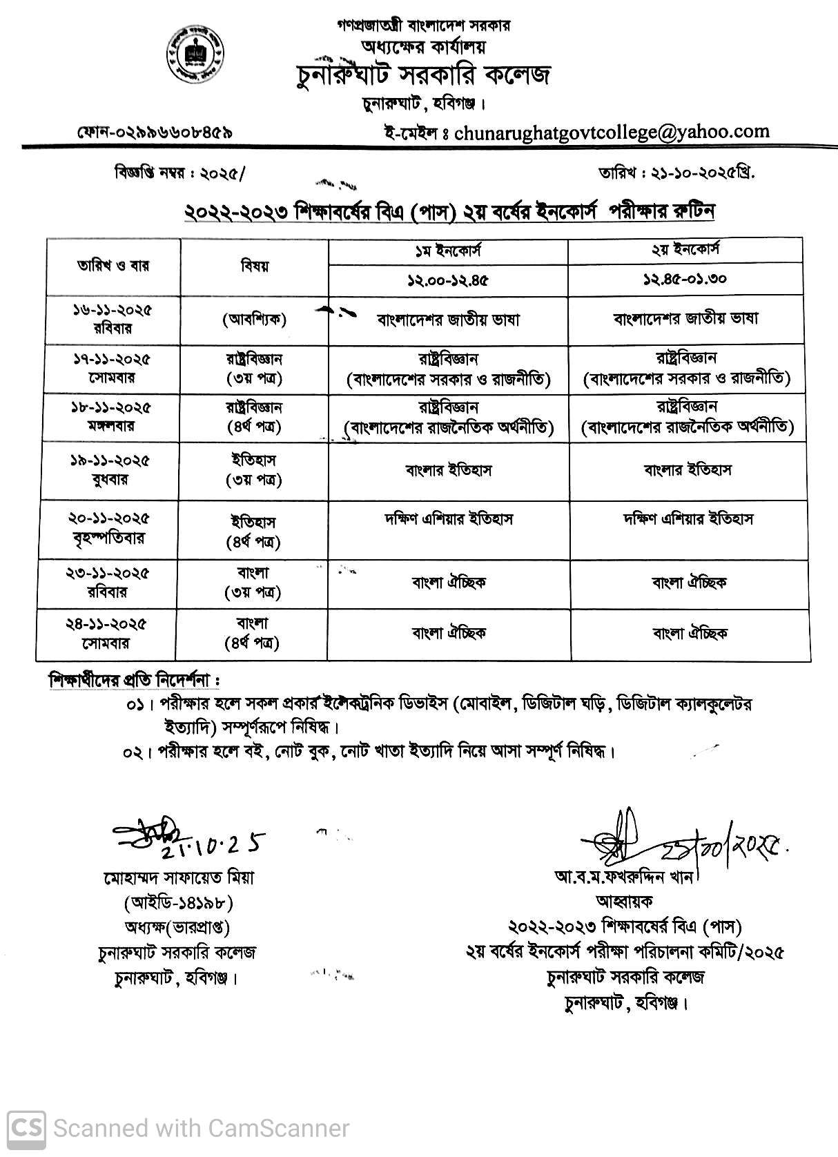 ২০২২-২৩ শিক্ষাবর্ষের বি.এ.(পাস) ২য় বর্ষের ইনকোর্স পরীক্ষার সময়সূচি
